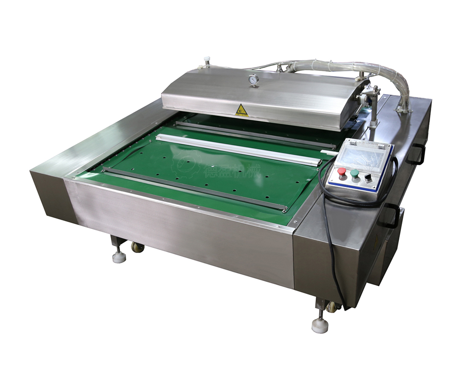 用途:蔬菜、水果、海鲜、肉类、固体物料等抽真空包装。全自动滚动输送作业,真空抽取处配有压力表。时间可调。